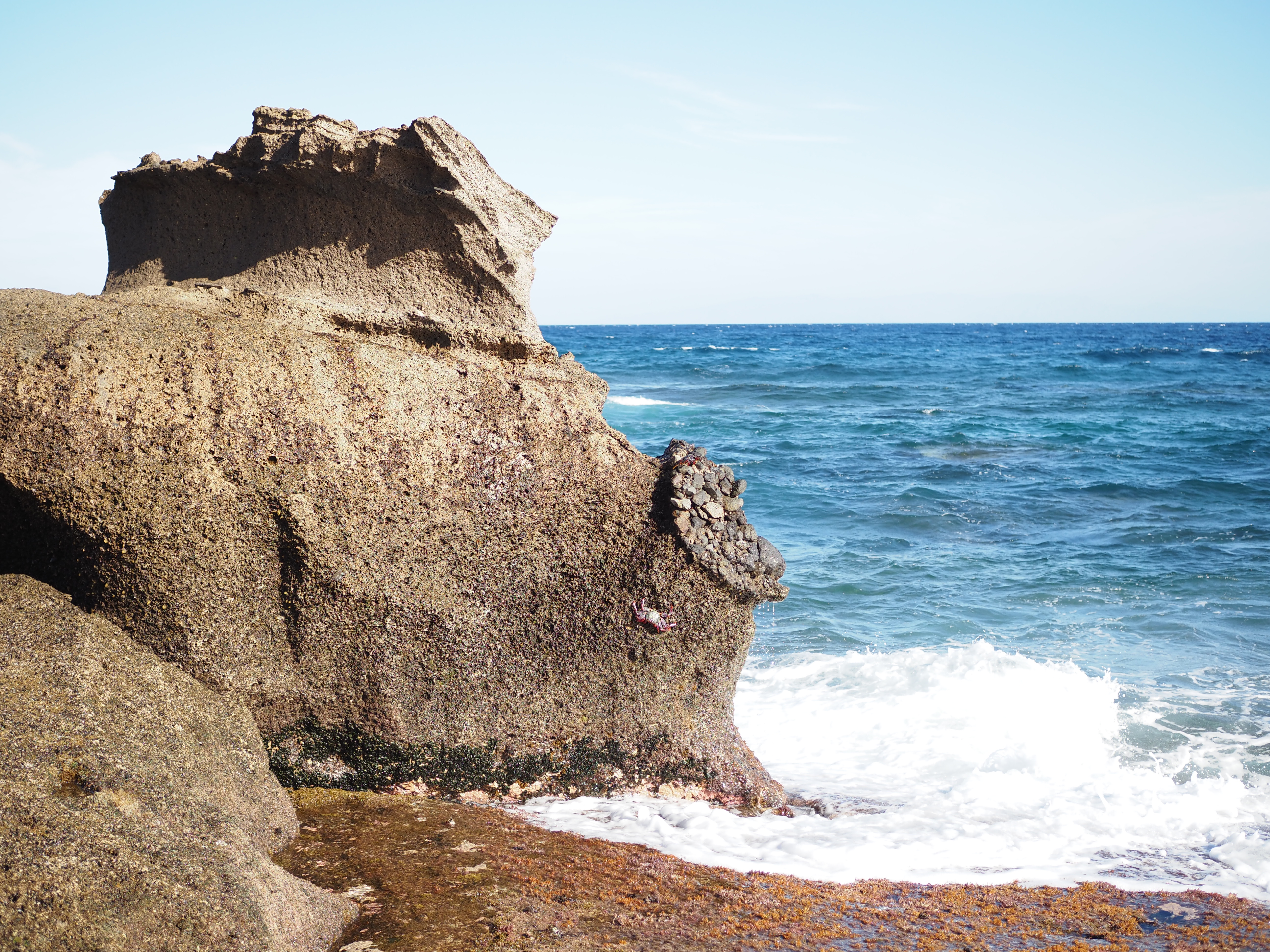 Auf der Suche nach einem Strand machten wir uns auf zum Playa de Tajao. Mietauto fix abgestellt und immer dem Meeresrauschen nach. Wir fanden den steinigen Küstenabschnitt und freuten uns wahnsinnig über die vielen Krebse, die erst bei genauem Hinsehen sichtbar wurden.