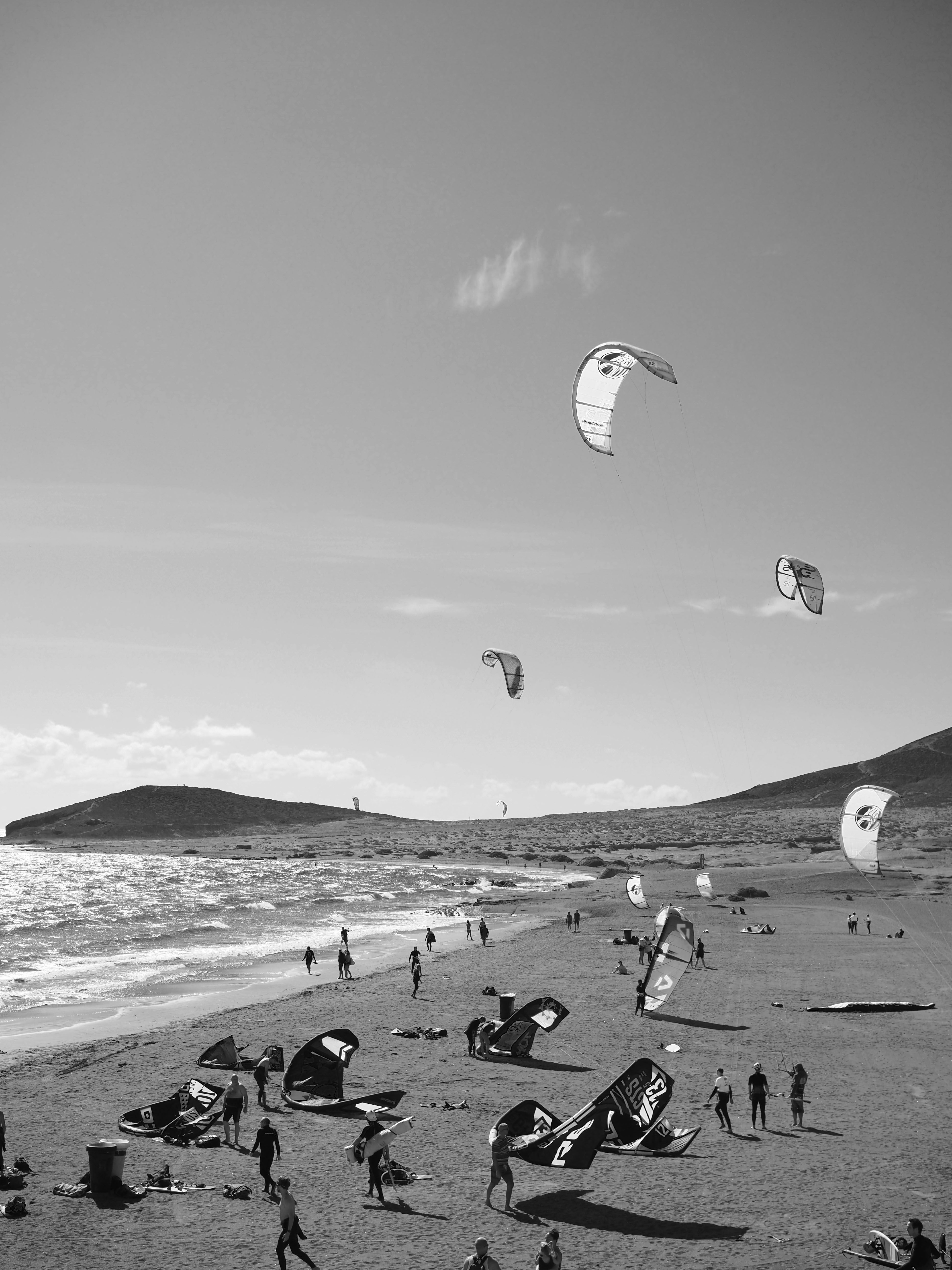 Stundenlang hätte ich den Kitesurfern vom Strand aus zusehen können, wie sie im Wind tanzen, langsamer werden, dann wieder Fahrt aufnehmen. Surflehrer halfen den Neulingen bei den ersten Handgriffen, gleichzeitig tanzten zahlreiche Profis im Wind und mehr als einmal fragte ich mich, wie sie es schafften, auf so engem Raum zu surfen, ohne sich auch nur ansatzweise in die Quere zu kommen. Bereits auf dem Rückflug skizzierte ich die Szenarie und übertrug meine Erinnerungen daheim auf eine Leinwand.