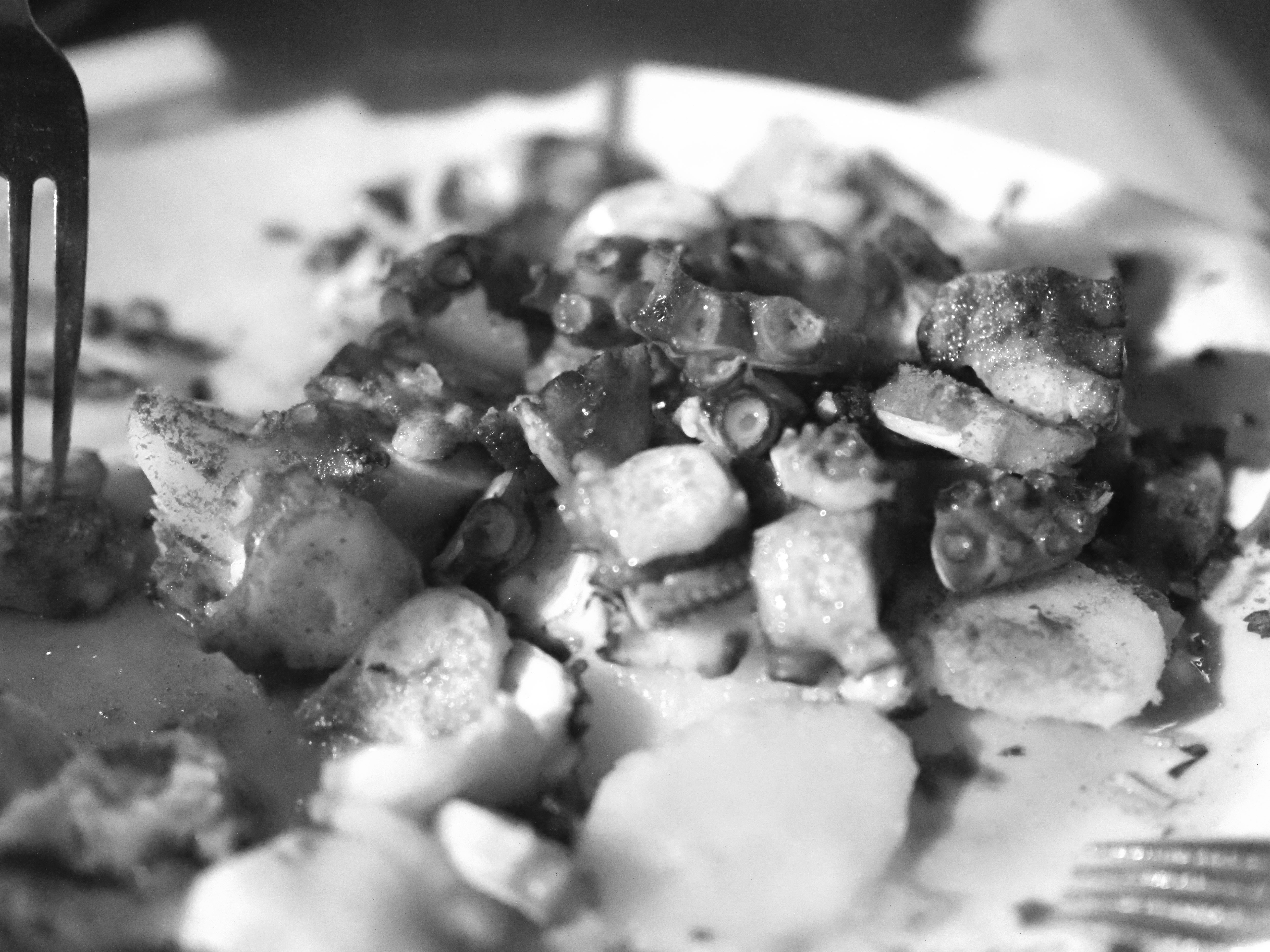 Nichts geht über frischen Fisch! Bei einem Aufenthalt an der Küste solltet ihr auf jeden Fall eines der vielseitigen Fischangebote der Einheimischen nutzen. Wir fanden ein Restaurant in Las Galletas direkt am Strand, in dem wir schnell mit dem überaus freundlichen und offenen Kellner ins Gespräch kamen und daraufhin seine Empfehlung bestellten. Wir ließen uns überraschen und wurden nicht enttäuscht. Es gab Oktopus als Vorspeise und eine reichlich gefüllte Fischplatte mit frischen Spezialitäten.