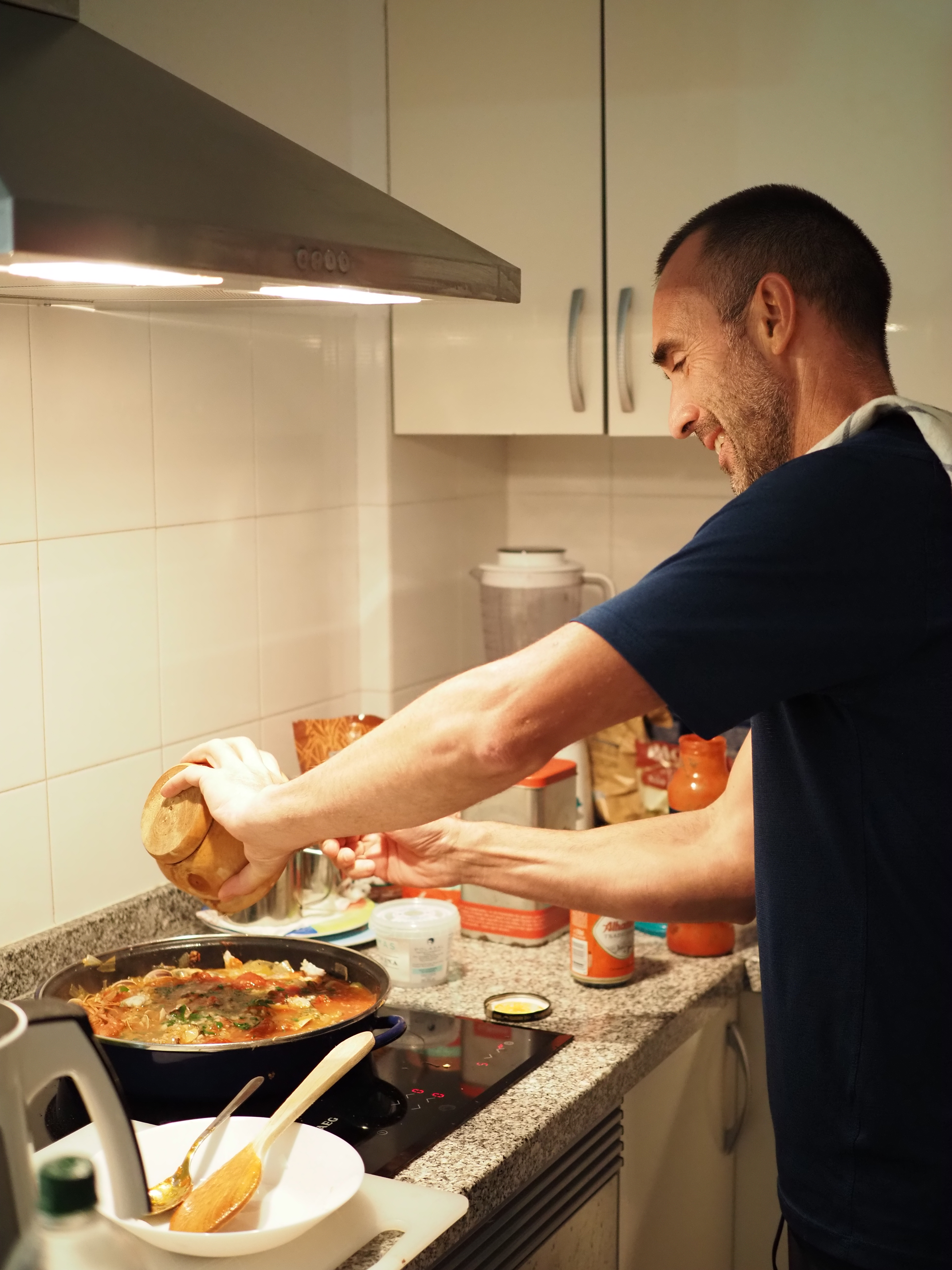 Aber solltet ihr jemals von einem Spanier zum Paella kochen eingeladen werden, solltet ihr euch diese Chance nicht entgehen lassen. Wir haben das große Glück, Benja unseren Freund nennen zu dürfen. Er lebt auf Teneriffa und lud uns während unseres Aufenthaltes in seine ‚casa‘ ein. Wir aßen ‚tapas‘ und halfen ihm bei der Zubereitung einer typischen Paella. Glaubt mir, es war köstlich!