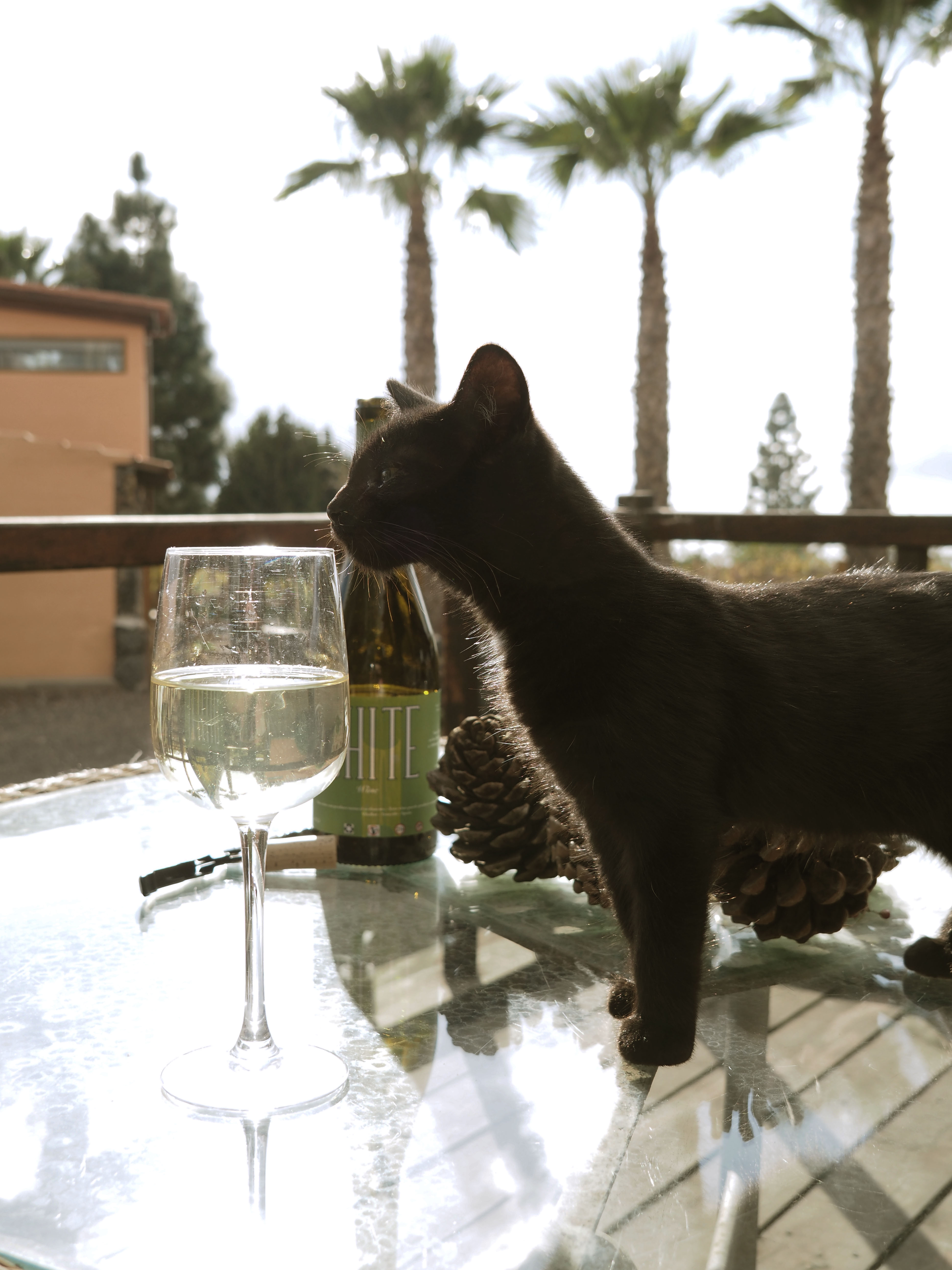 Vilaflor liegt auf 1.600 m Höhe umgeben von herrlich duftenden Pinienwäldern und zählt zu einem der höchstgelegenen Dörfer Spaniens. Rückblickend hatten wir eine der besten Unterkünfte, die wir hätten finden können. Gelegen auf einer kleinen Farm fühlten wir uns abseits der touristischen Zentren super wohl und konnten die Ruhe richtig genießen. Die kleine Finka ist urig eingerichtet und den frisch aufgebrühten Espresso am Morgen machten wir zu unserem persönlichen Ritual. Das nette Paar – Raquel und Andrew – stellt im Übrigen Wein aus eigenem Anbau her, der köstlich schmeckt. Ein kleiner Pluspunkt waren auch die drei Babykatzen, die jeden Morgen schon sehnsüchtig vor unserer Tür auf ihre Streicheleinheiten warteten.