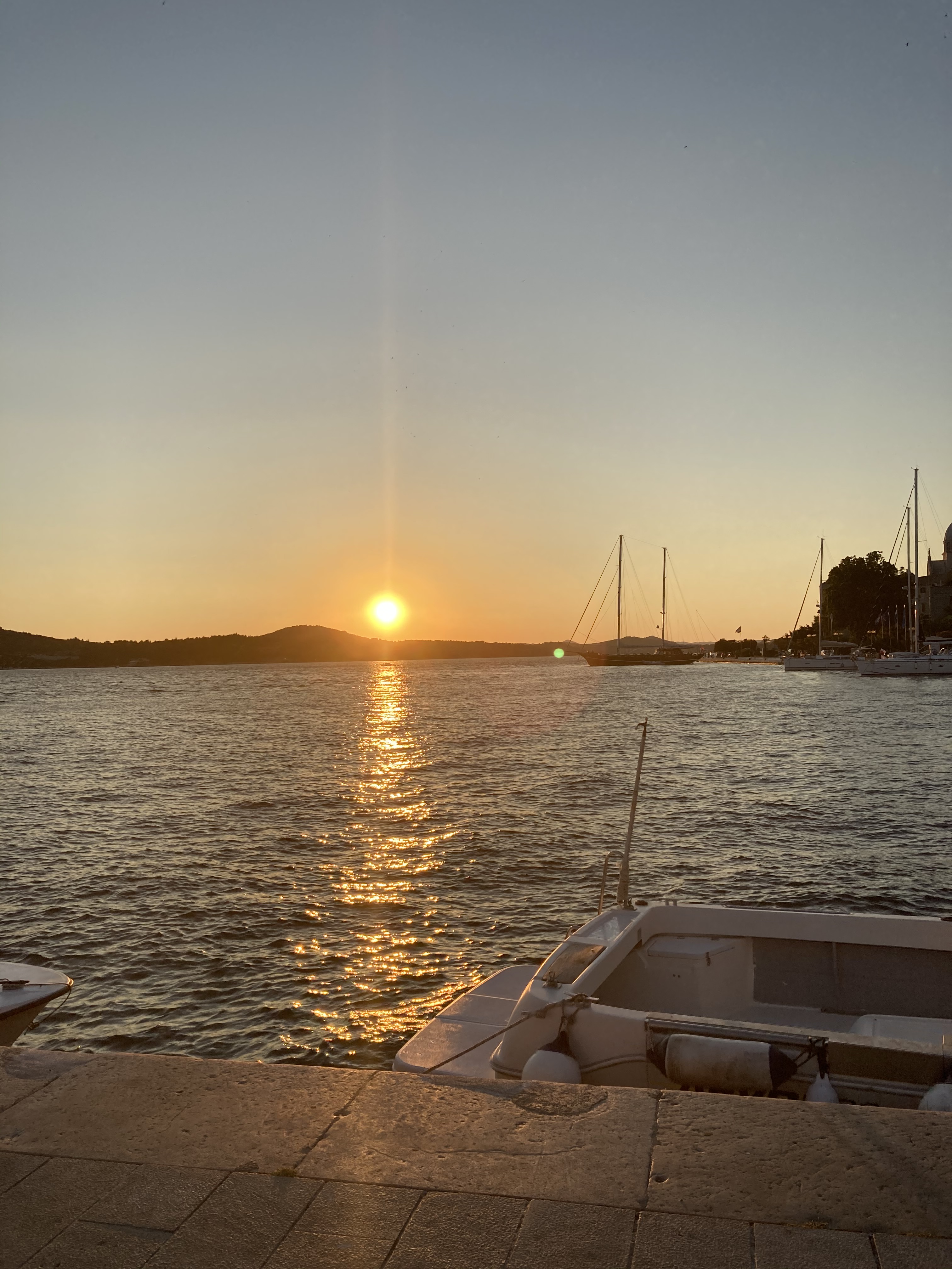 Den Sonnenuntergang genossen wir im Anschluss mit einem Cocktail an einer Bar mit direktem Blick auf die Silhouette des Festlandes – der perfekte Ausklang unseres Roadtrips durch Kroatien.
