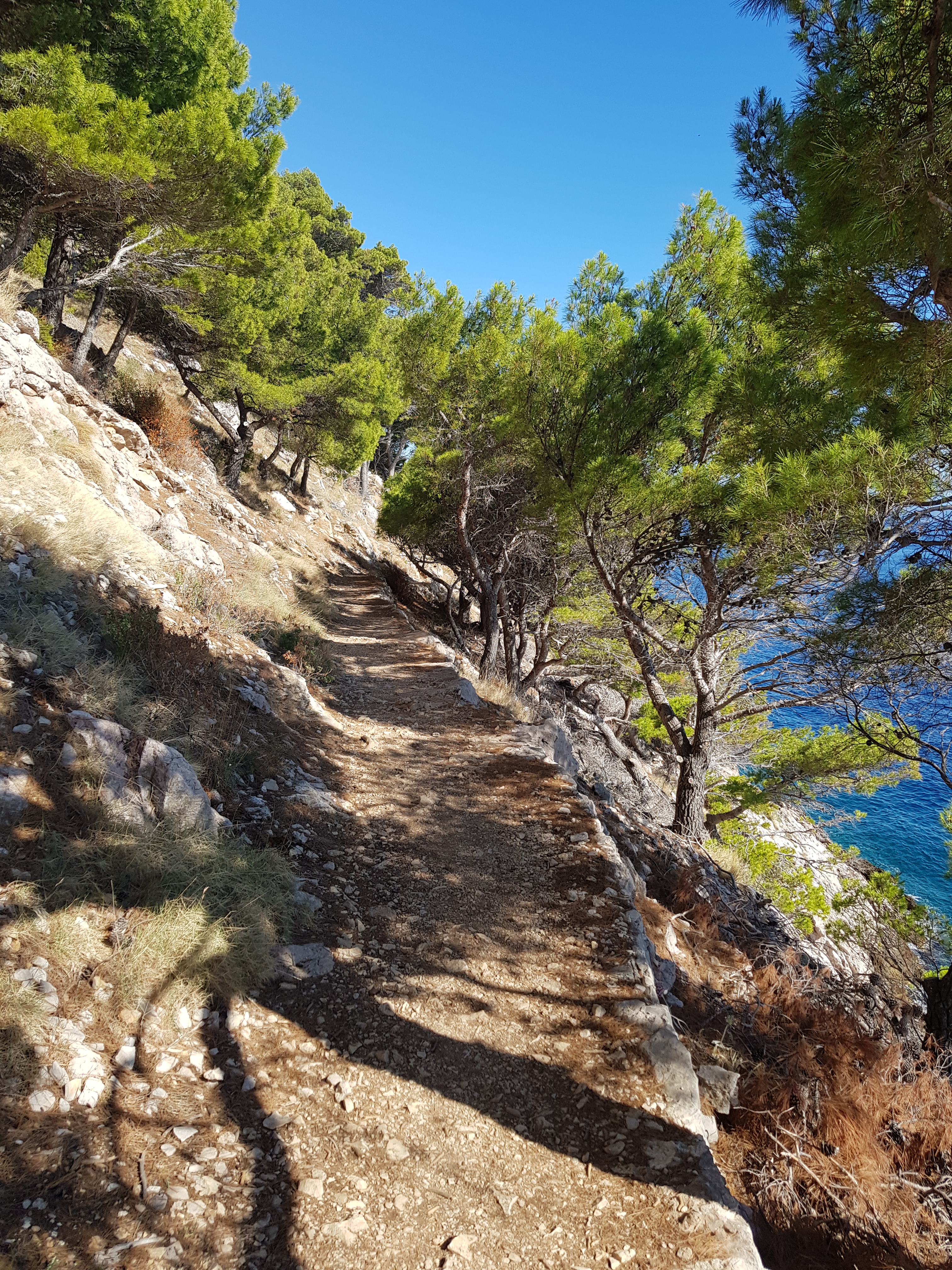 Ganz in der Nähe des beliebten Badeorts Makarska befindet sich der Nugal Beach, ein etwas versteckter Kieselstrand umgeben von malerischer Kulisse. Die Wanderung entlang der Küste verläuft durch den Waldpark Osejava vom Zentrum von Makarska aus und dauert knapp 30 Minuten. Beliebt ist der Badeabschnitt besonders bei Nudisten. Als Bikiniträger wurden wir jedoch deshalb nicht schief angeschaut. 😉
