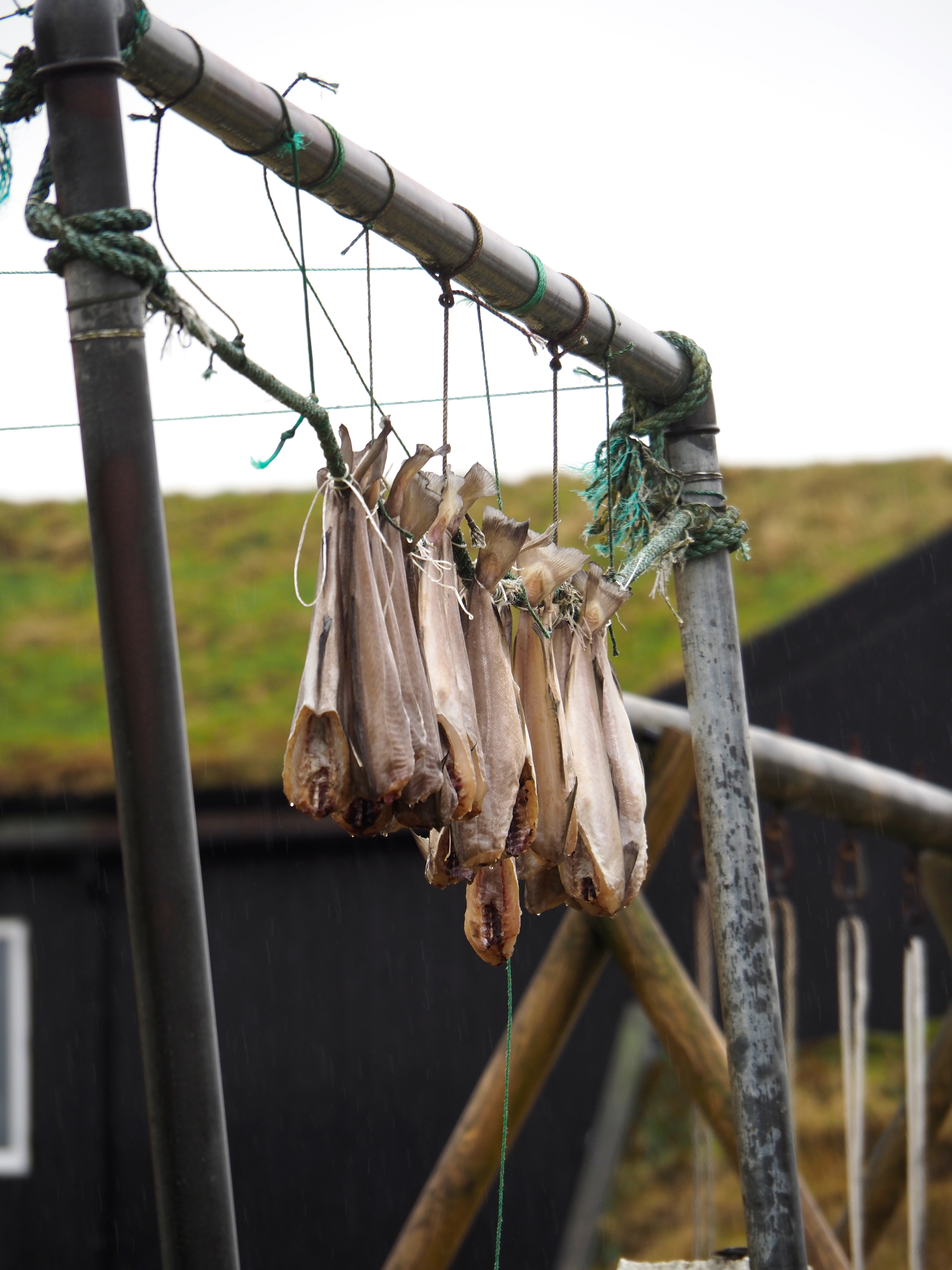 Eine davon nahmen wir, um auf die kleine Insel Nolsoy überzusetzen. Hier wollten wir die Wanderung zum alten Leuchtturm im Süden der Inseln gehen. Leider machte uns wieder einmal das Wetter einen Strich durch die Rechnung und ein wahnsinnig dichter Nebel zog auf. Im Zentrum, dessen Eingang mit einem Walrippenbogen gekennzeichnet ist, fanden wir leider aufgrund der Nebensaison auch keine geöffneten Cafes oder Lädchen. Umso mehr freuten wir uns, den Nationalvogel noch einmal aus nächster Nähe beobachten zu können, wie er durch das nasse Gras stakste.