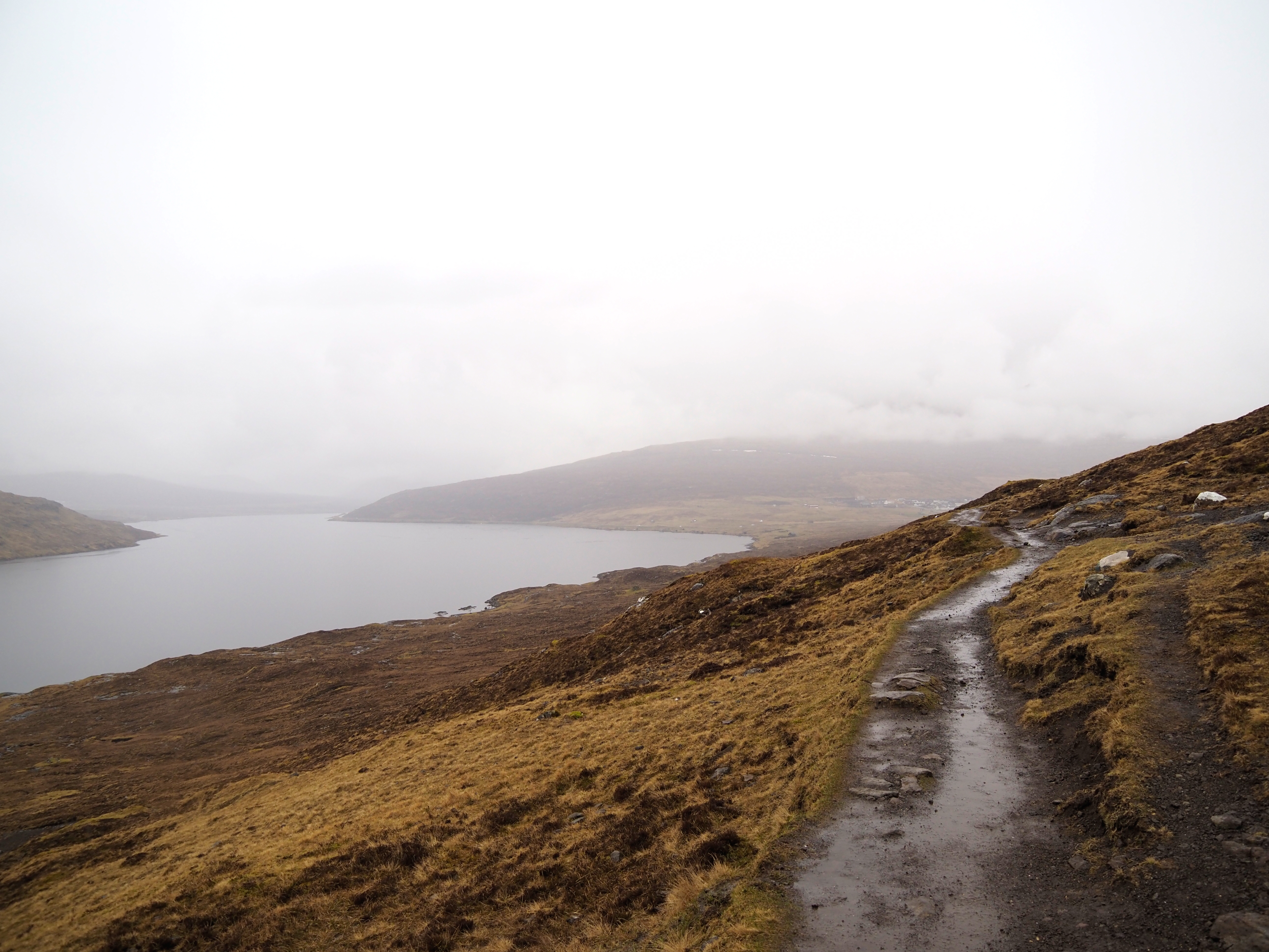 Der Leitisvatn ist auch als „See, der über dem Meer schwebt“ bekannt. Er ist mit 3,56 km² der größte Binnensee der Färöer und liegt im Süden der Insel Vágar. Das nächstgelegene Dorf am See ist Midvágur, wo wir auch unser Auto abstellten. Der Anfang des unbefestigten Weges, der dich am See entlang bis zur Küste führt, ist gut ausgeschildert. Dort befindet sich eine Art Kassenhäuschen sowie Toiletten. Da es an diesem Tag durchgängig regnete und wir erst nachmittags starteten, war die Kasse nicht besetzt und wir konnten ohne Eintritt durchgehen. Schilder wiesen uns darauf hin, dass normalerweise eine nicht unerhebliche Gebühr von DKK 400 pro Person (Stand 2023) fällig wird.