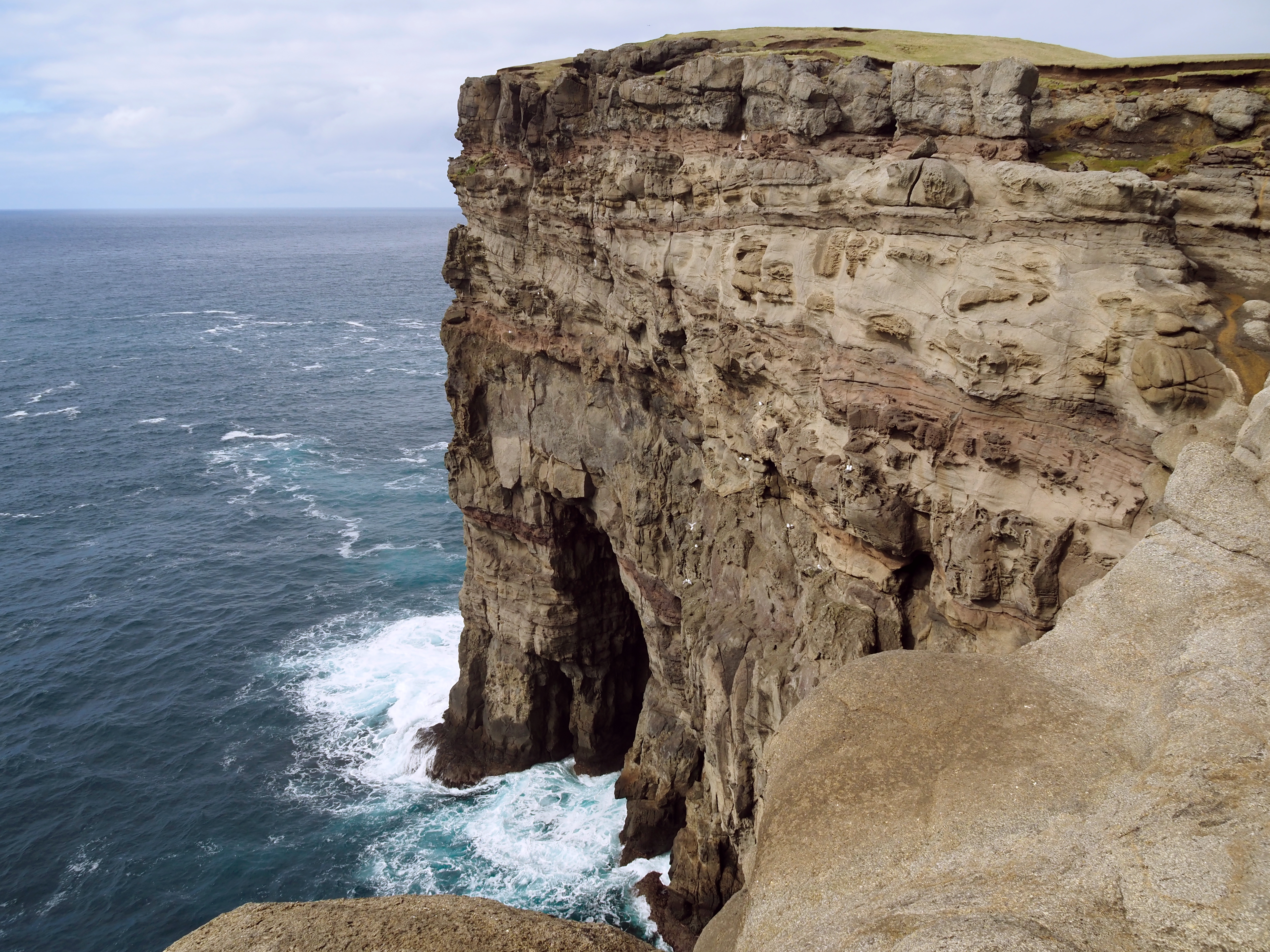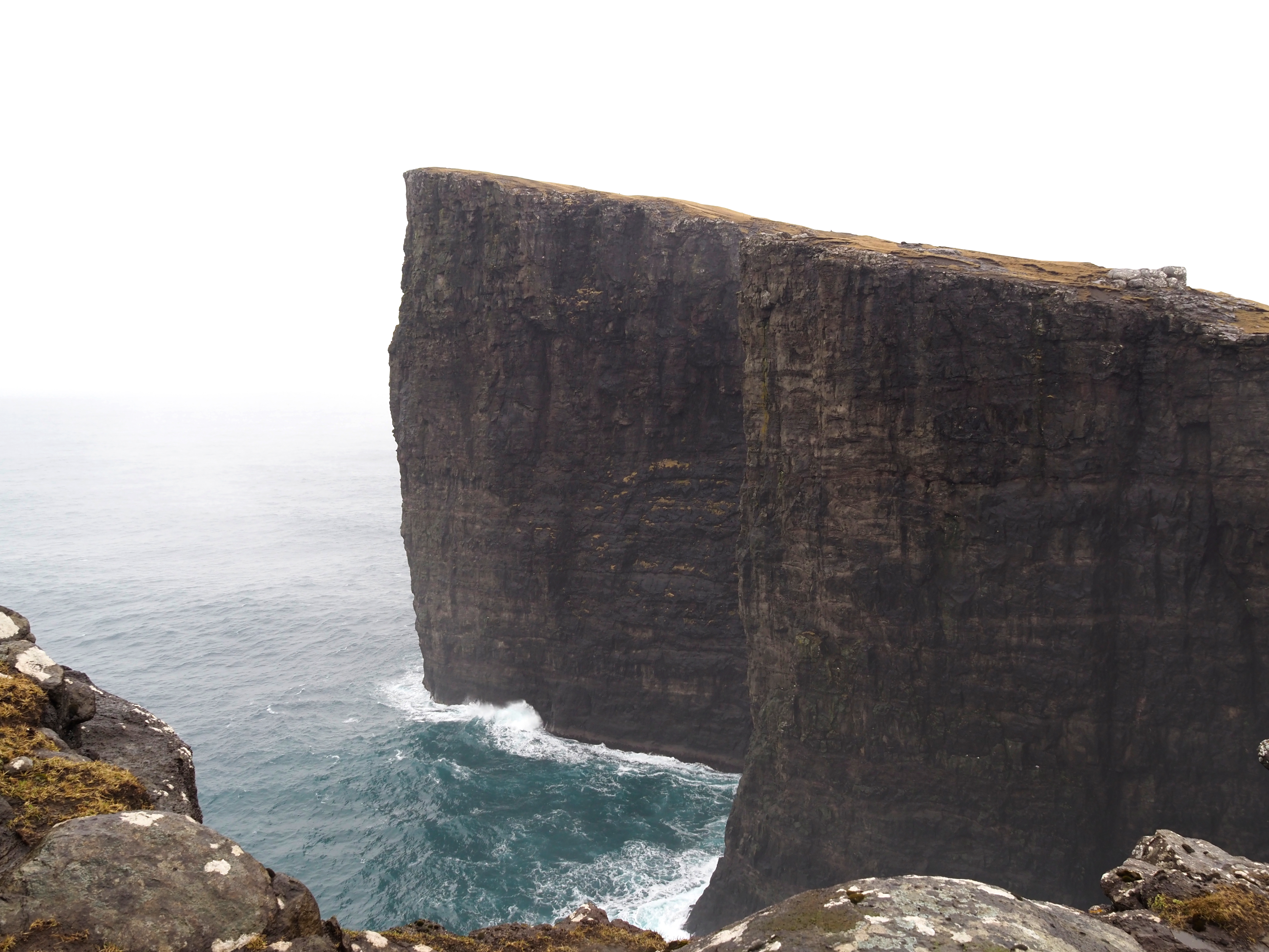 Die Klippen Trælanípa – übersetzt Sklavenklippe – ragen eindrucksvolle 142 Meter aus dem Meer empor. Der Legende nach erhielt die Klippe ihren Namen zur Zeit der Wikinger, als Sklaven von dem Felsen gestoßen wurden. Ein schauriger Hintergrund! Voller Respekt stand ich vor dieser massiven Klippe. Kein Zaun oder Ähnliches trennte mich von dem Abgrund.