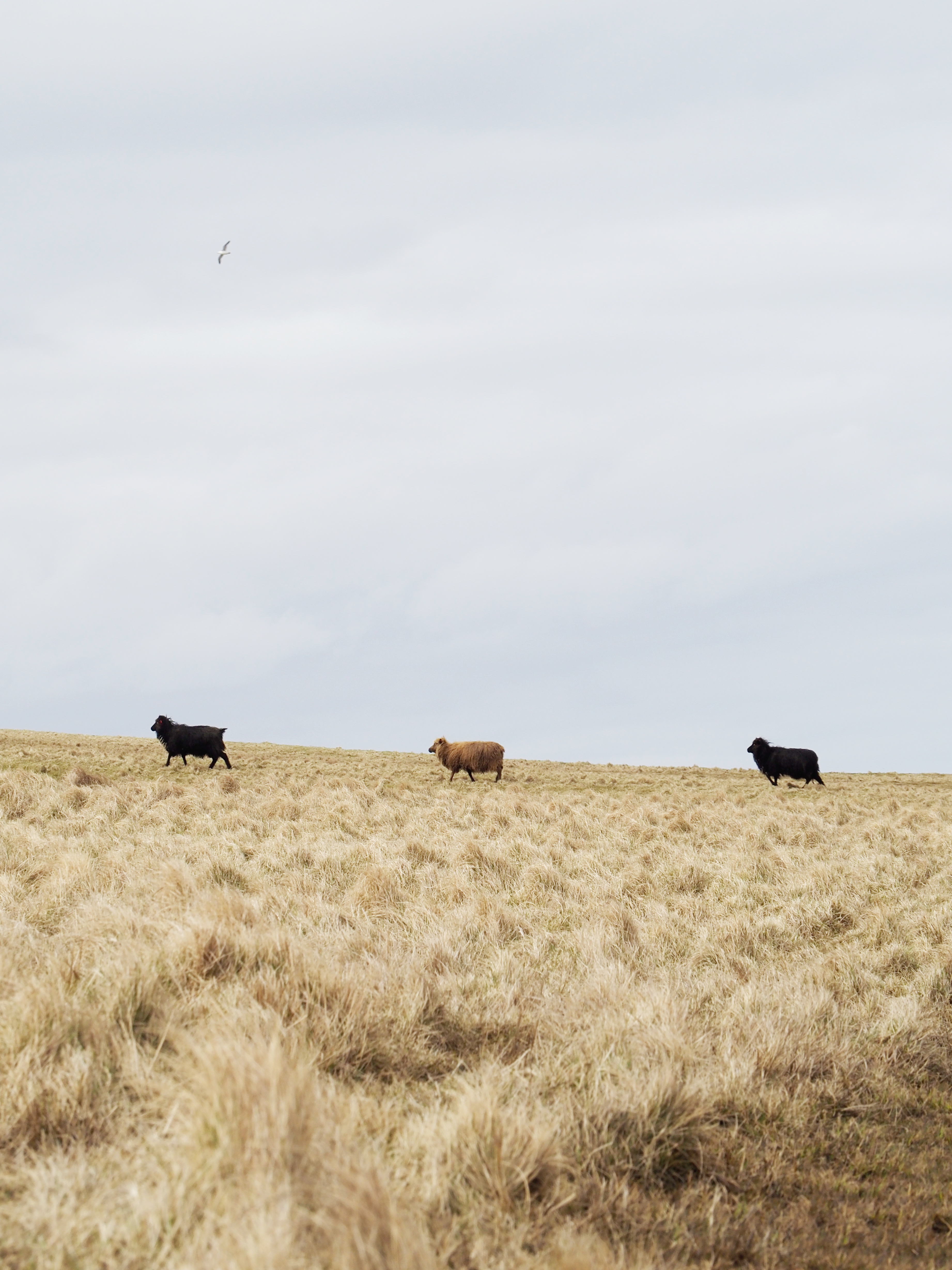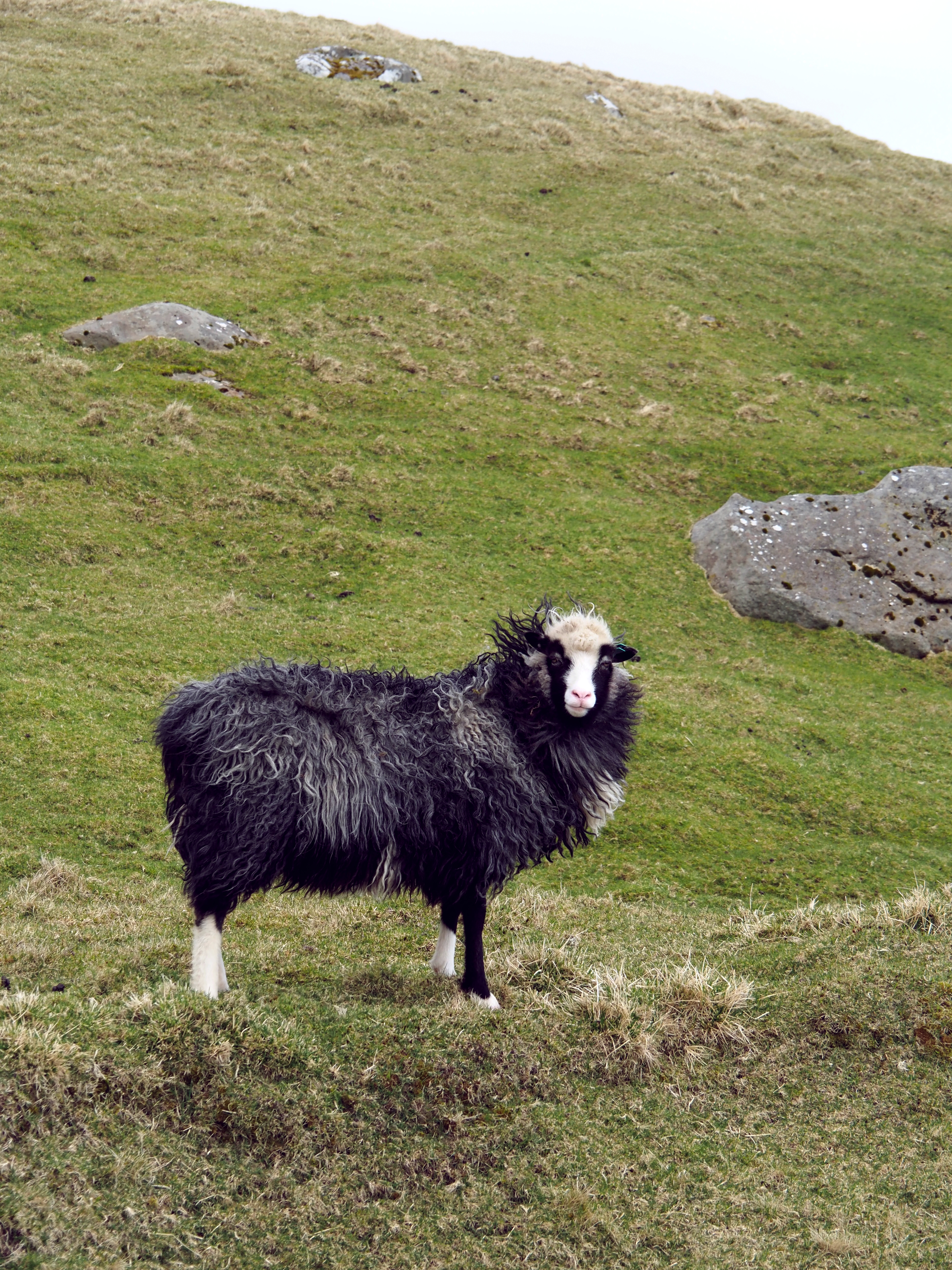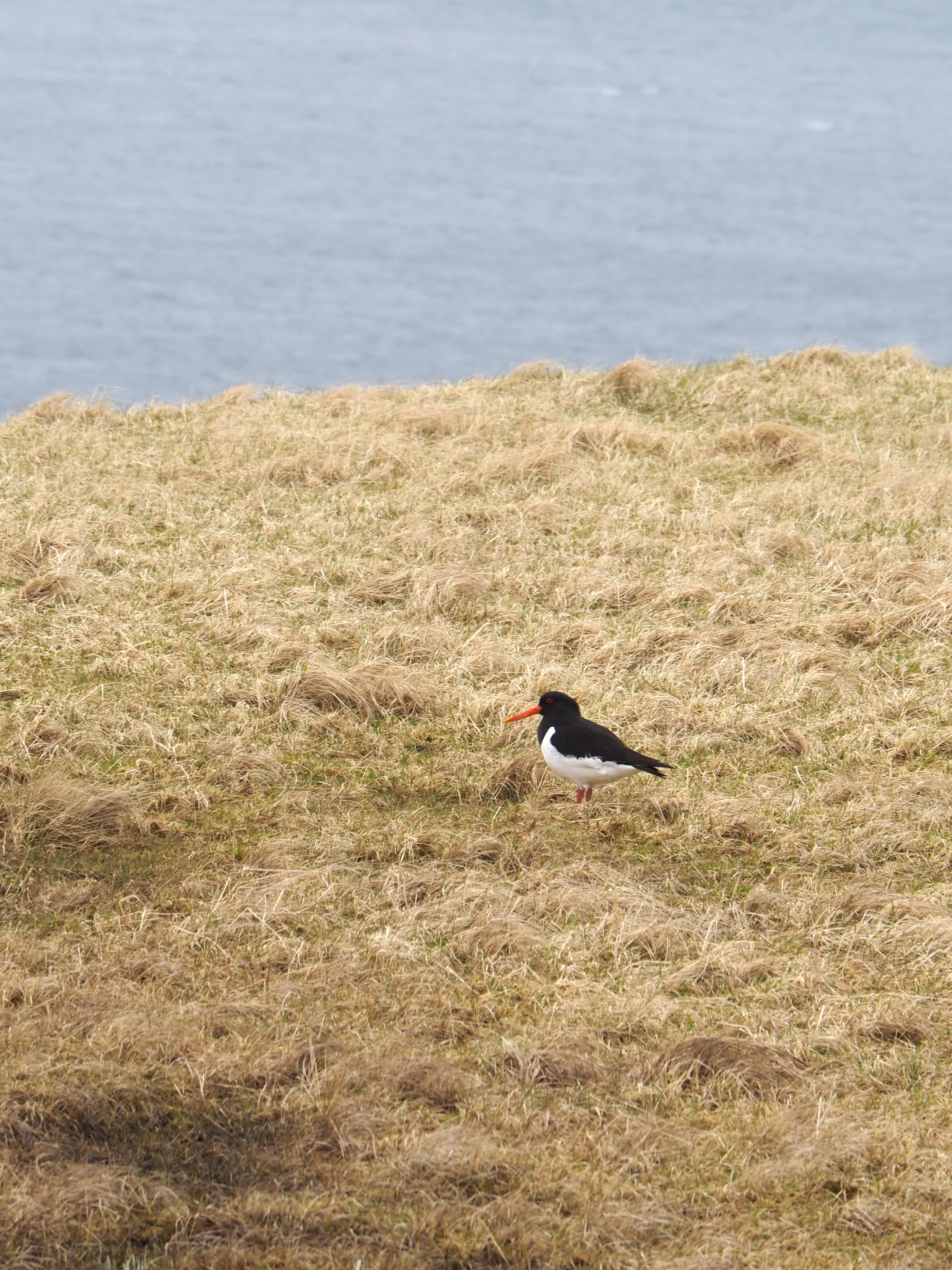 Nun zurück zu unserer Wanderung von Fuglafjordur nach Hellurnar. Nach anfänglichen Schwierigkeiten, da wir nicht glauben konnten, dass uns der Weg direkt über Privatgrundstücke führen sollte, ging es zunächst einige Zeit bergauf. Unterwegs sichteten wir den Nationalvogel der Fäörer Inseln – den schwarz-weißen Austernfischer mit seinem markanten, roten Schnabel. Besonders amüsiert hat uns, dass der Vogel im Flug Laute von sich gibt, die klingeln, als würde er schimpfen. Hast du es einmal auf den Berggipfel geschafft, führt dich der Weg direkt nach unten ins Dorf.