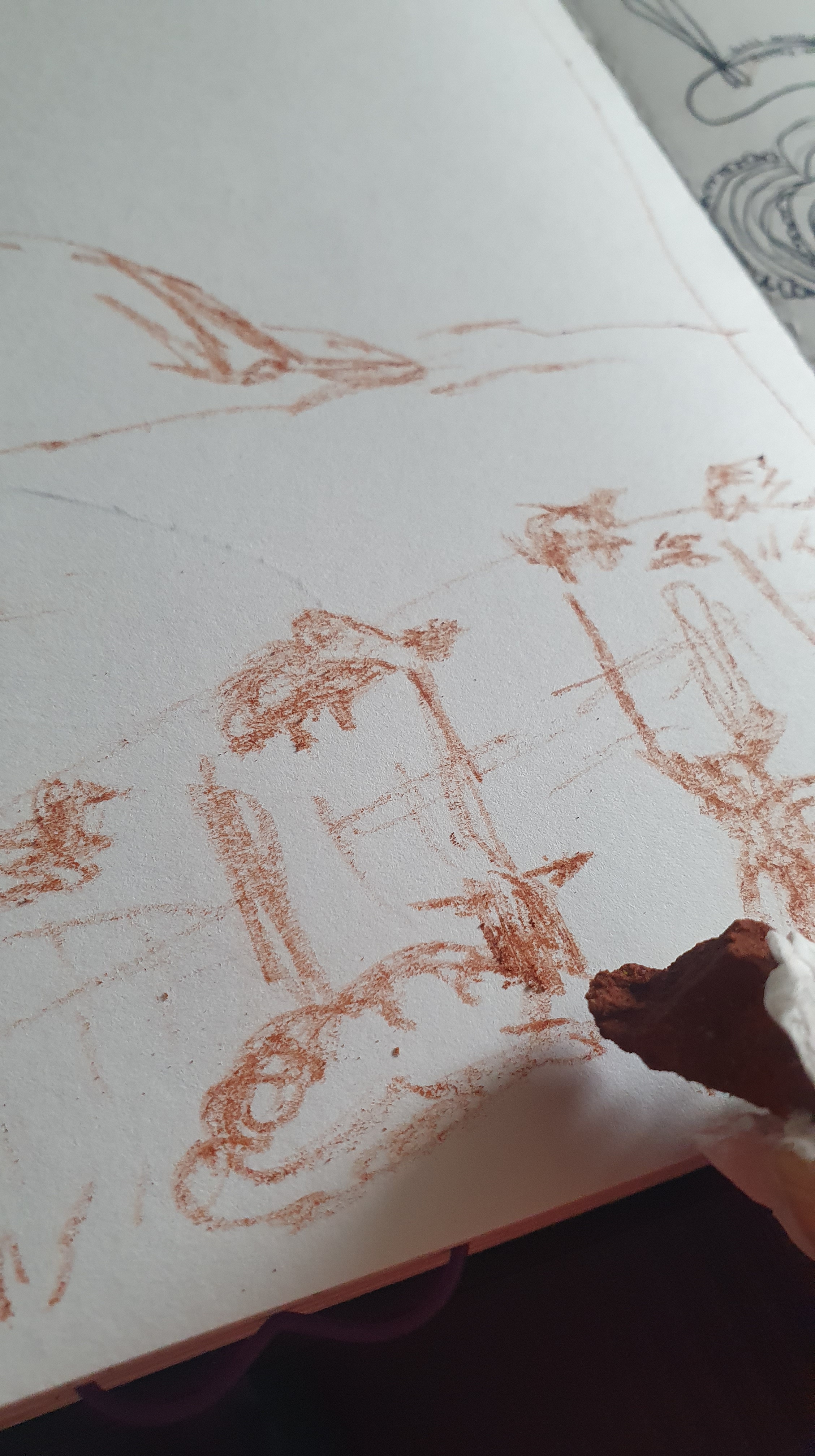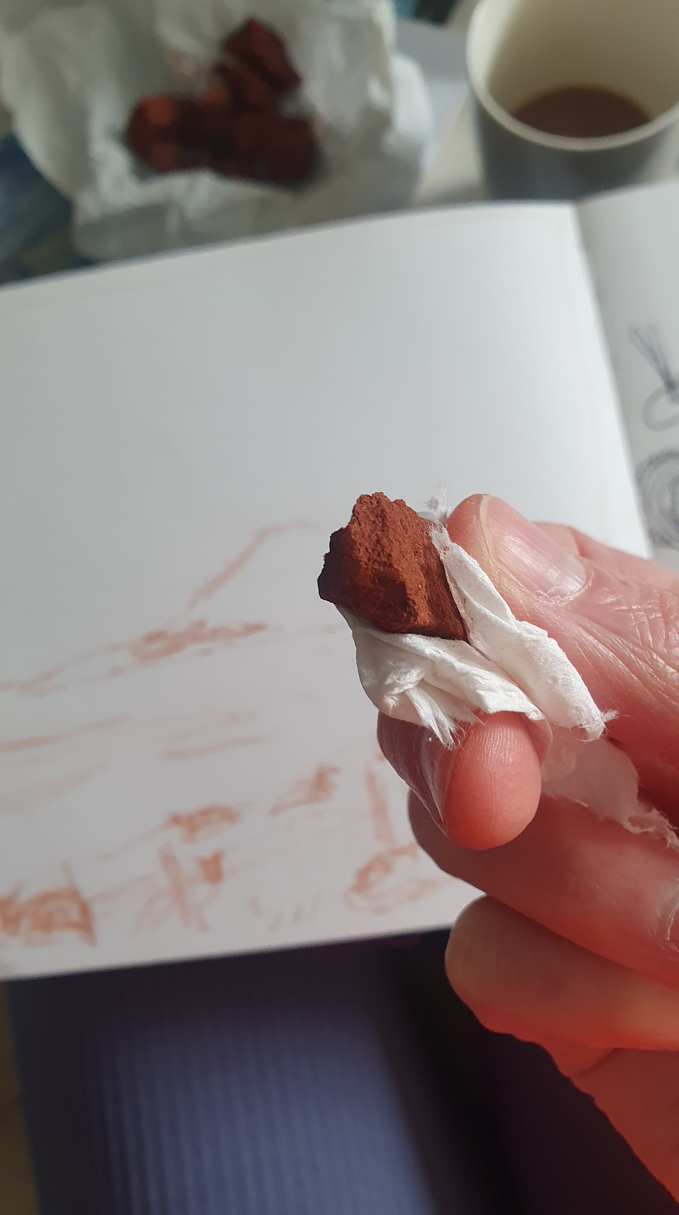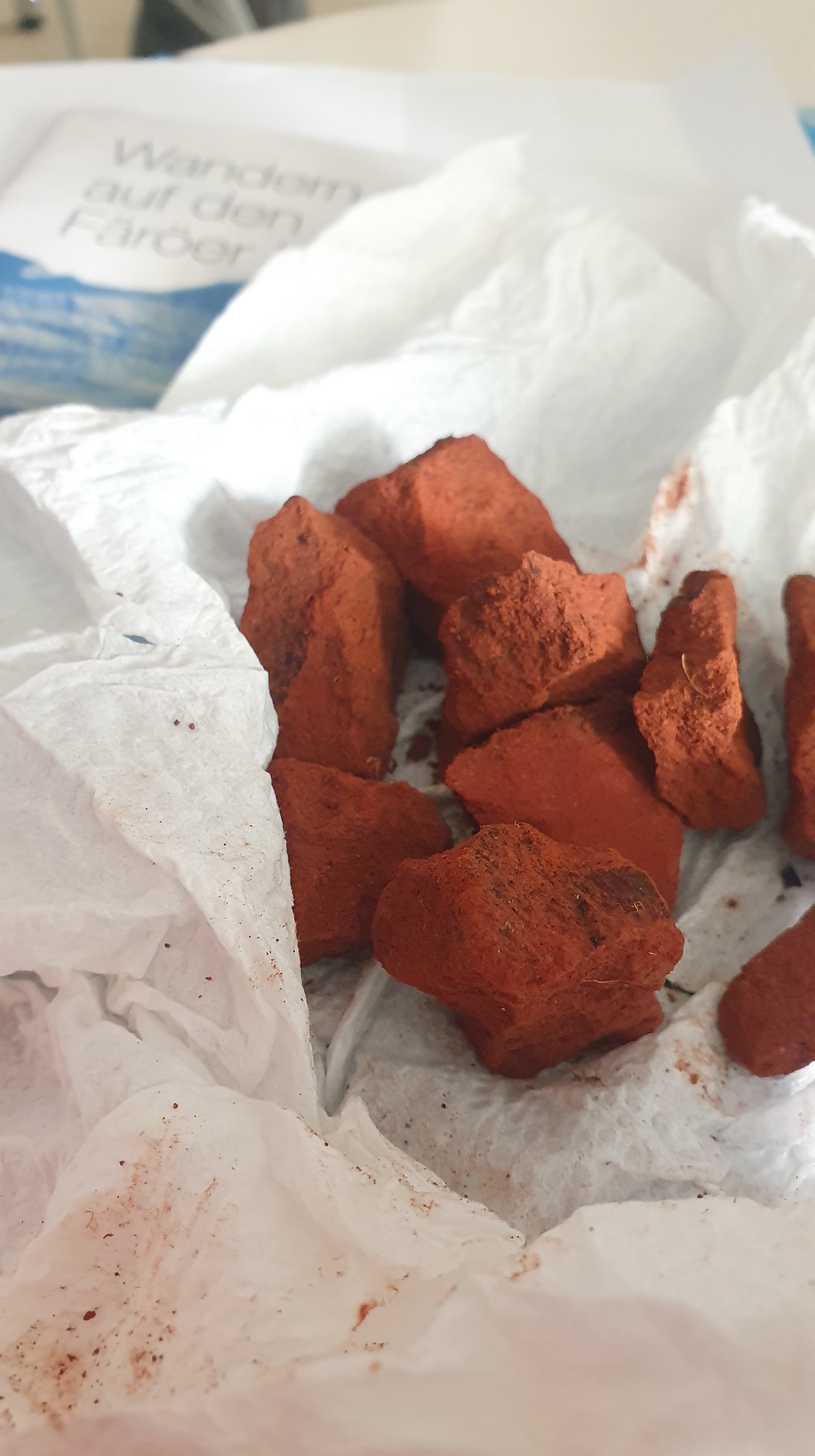 Habt ihr schon einmal Zeichenfarben in der Natur entdeckt? Zu Beginn unserer Wanderung auf Nolsoy entdeckte ich ockerfarbene Steine, die ich leicht in meiner Hand zerbröseln konnte. Fix nahm ich ein paar wenige für eine Bildidee mit, die ich in meinem Skizzenbuch entwarf und so hatte sich der kurze Aufenthalt auf der Insel auch ohne Wanderung gelohnt. 🙂