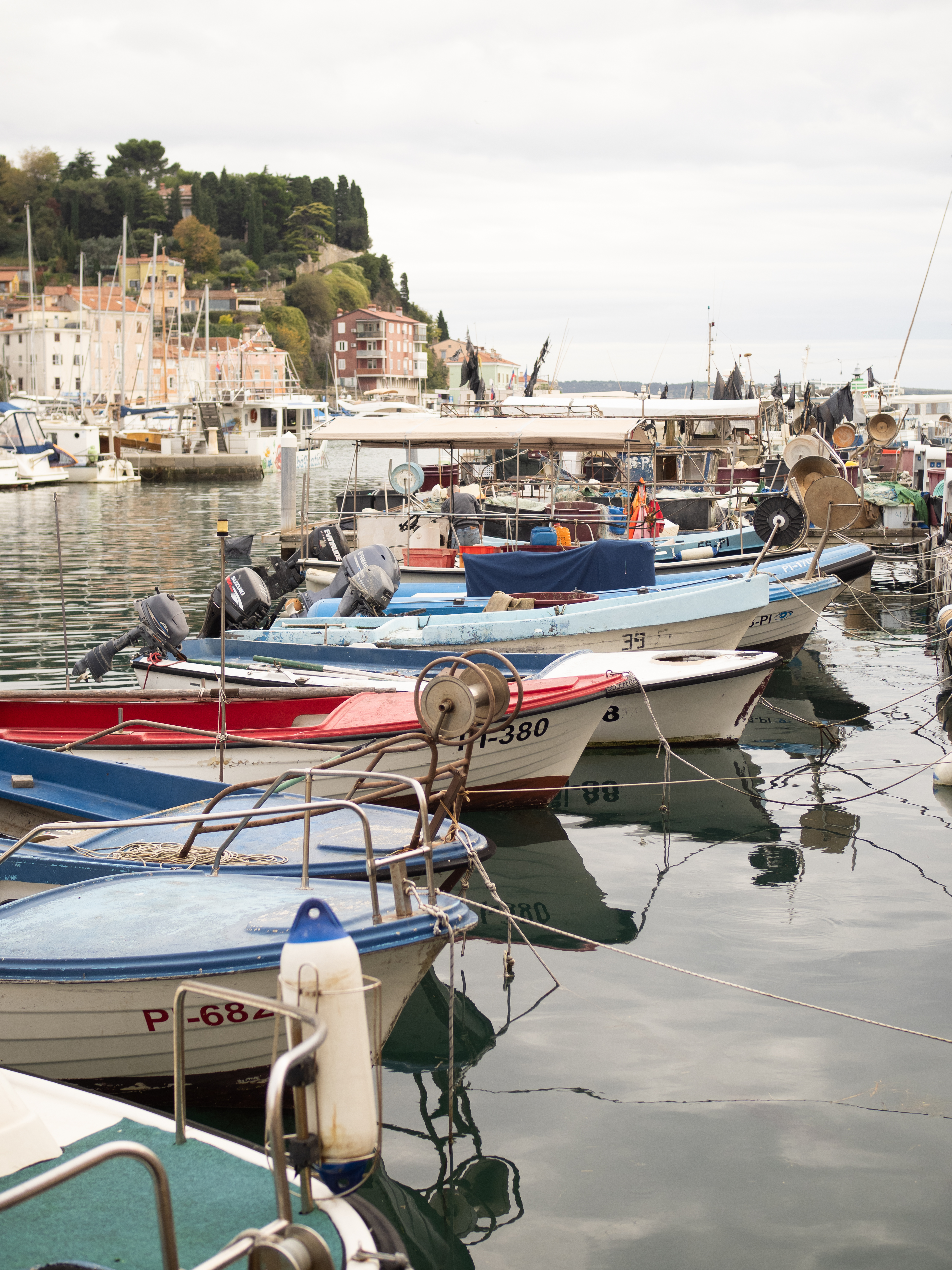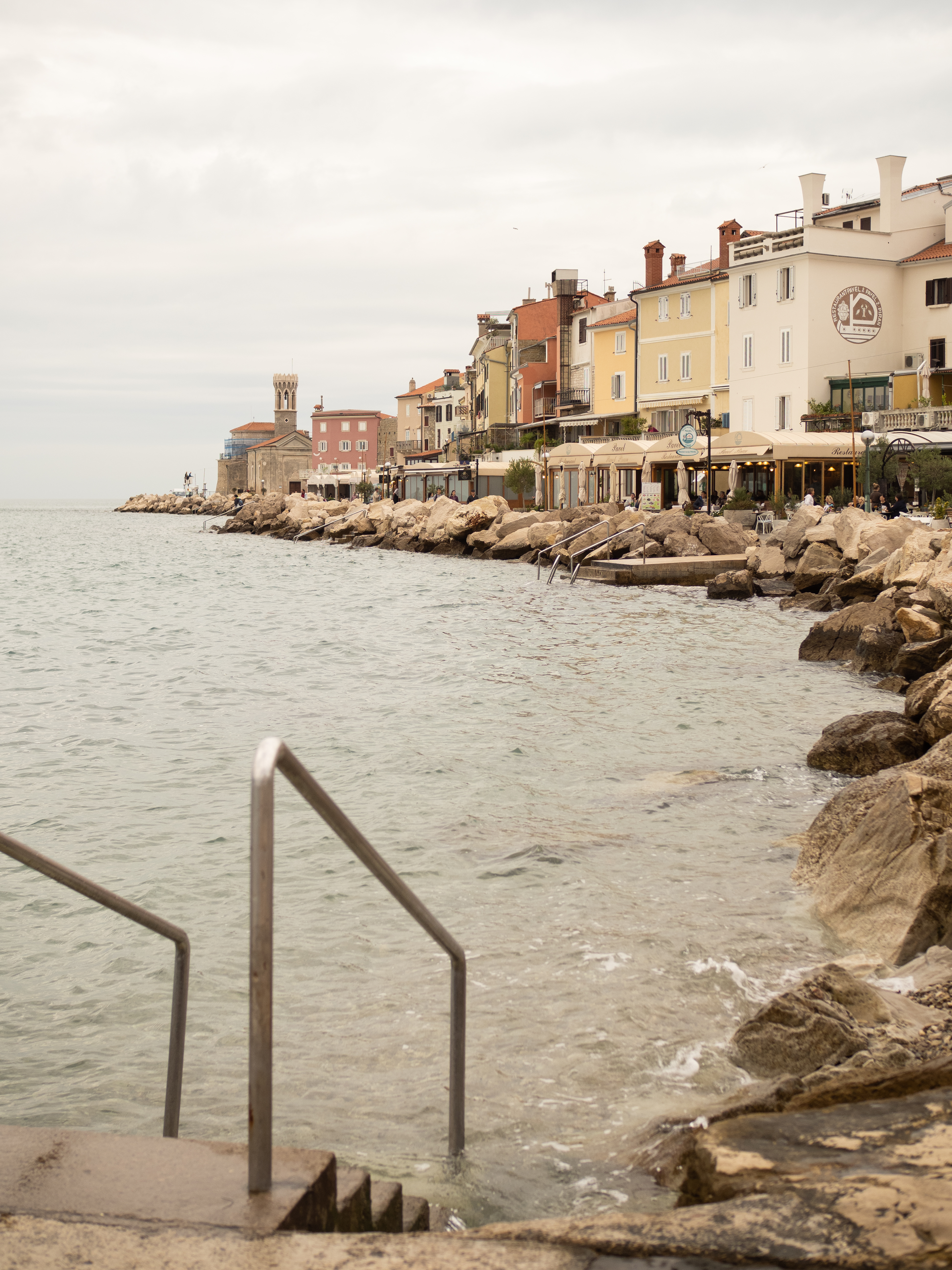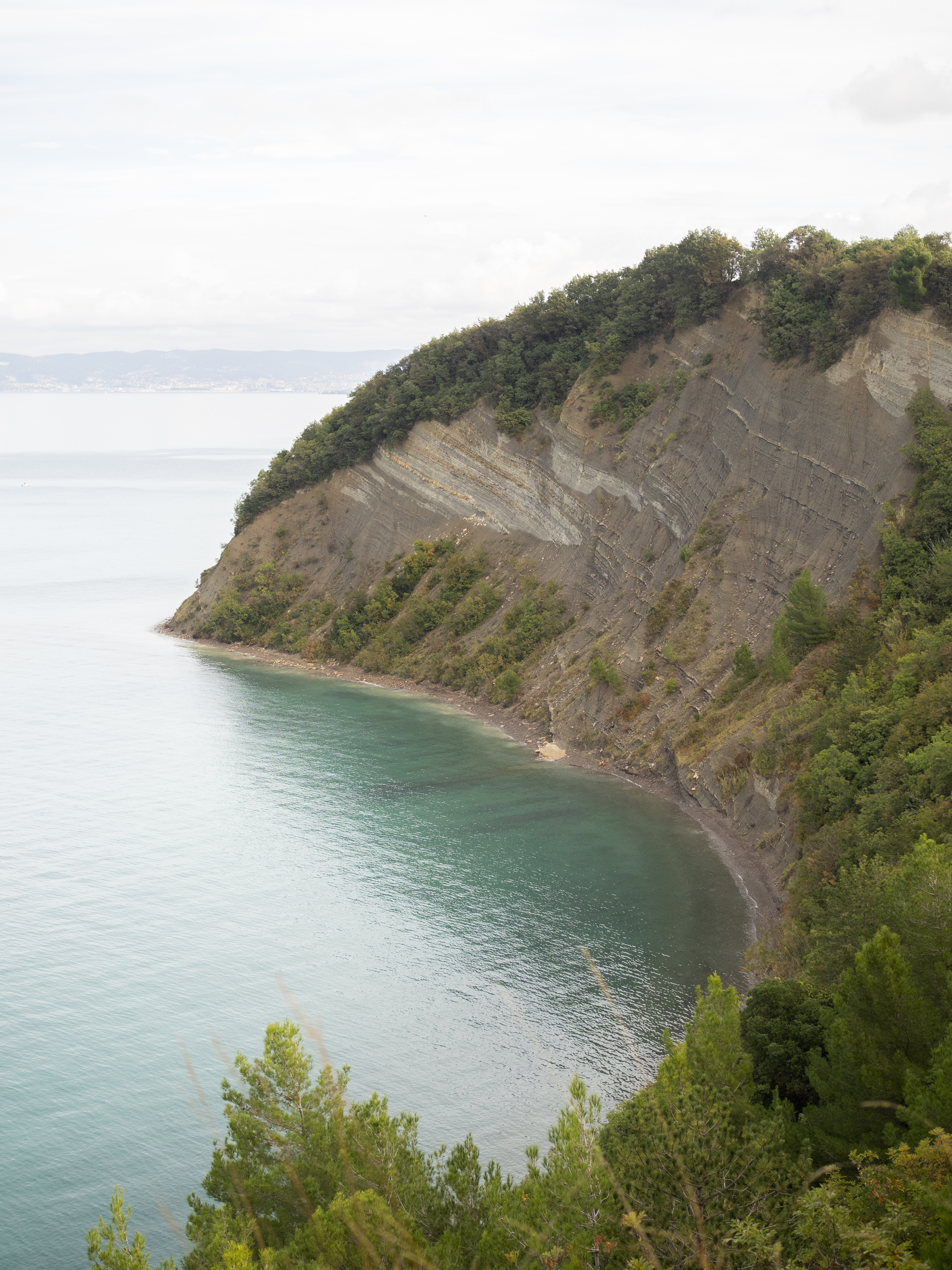 Nahe unserer Unterkunft in Strunjan gab es zahlreiche Wanderrouten. Eine davon führte uns zur berühmten Mondbucht. Leider war der Himmel wolkenverhangen, sodass wir nur erahnen konnten, in welchen Farben das Meer in dieser Bucht bei Sonnenschein schimmert. Während wir einige Stunden den fast menschenleeren Strandabschnitten genossen, Muscheln sammelten und spazierten, ließen wir uns von einem Einheimischen sagen, dass man hier im Sommer Glück haben muss, um überhaupt einen Liegeplatz zu ergattern.