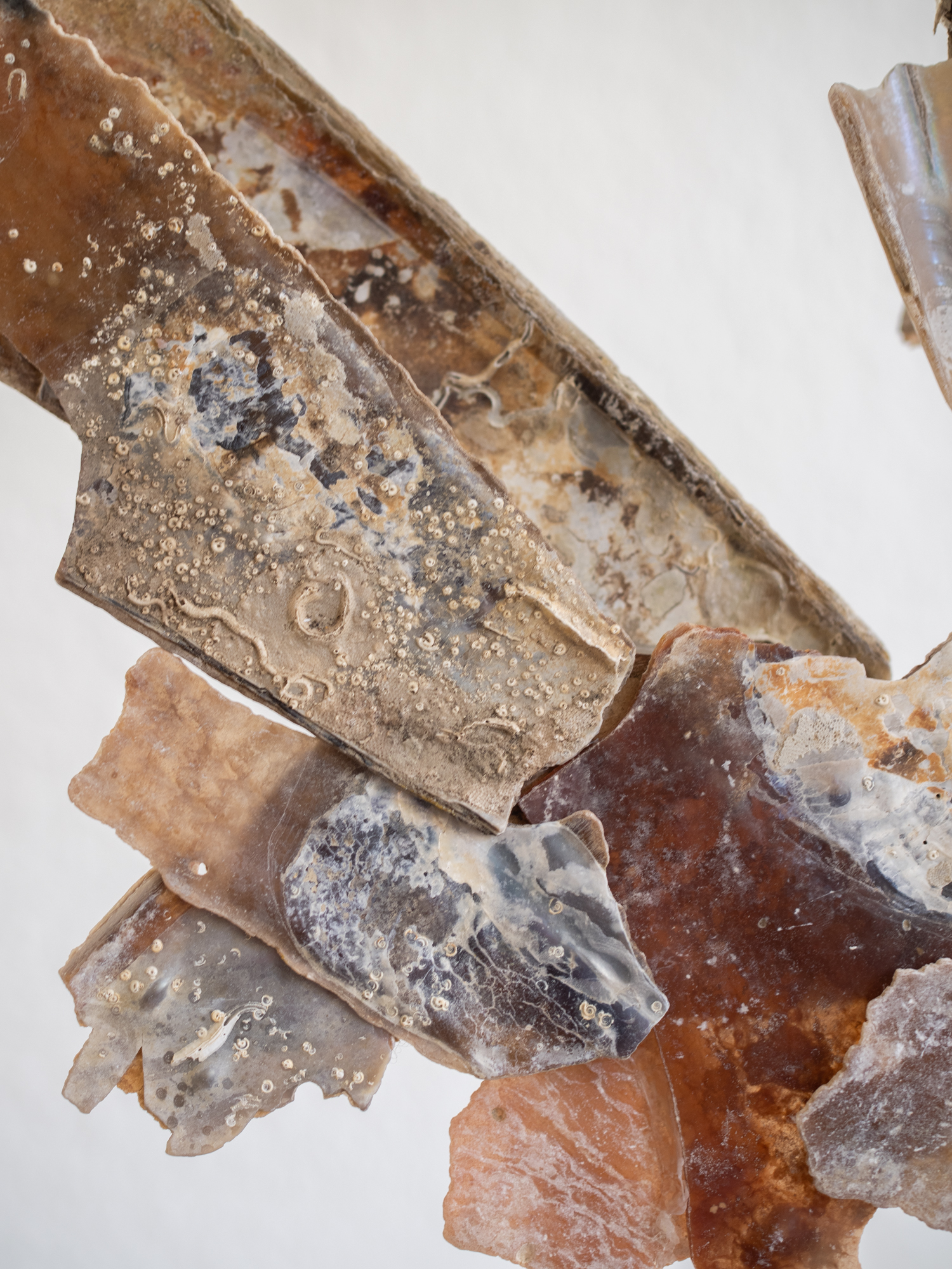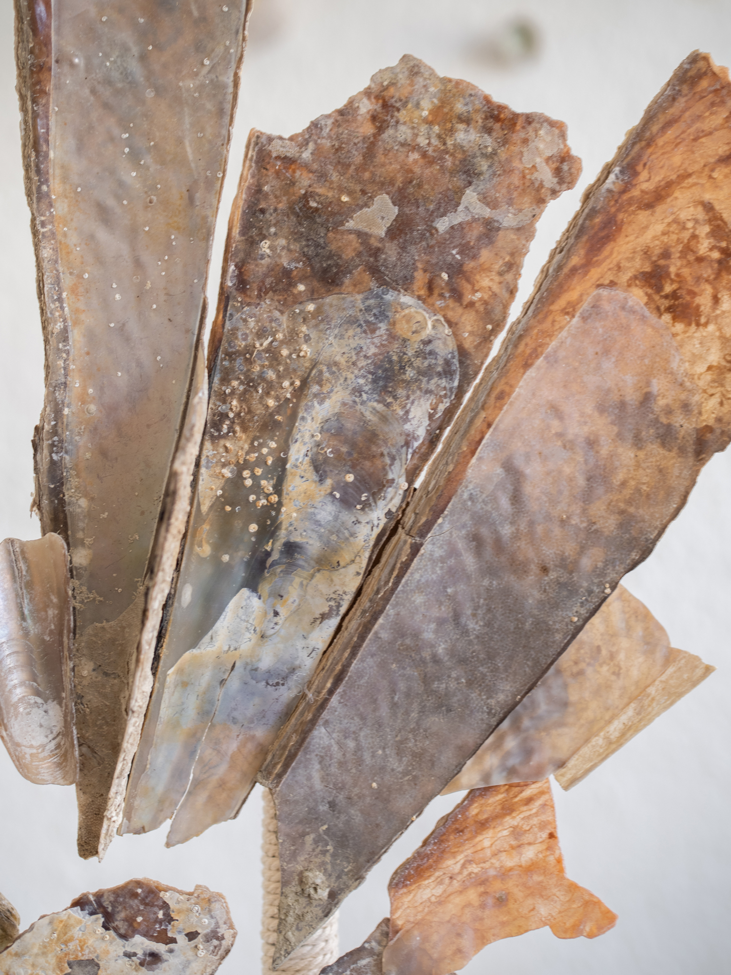 „Steckmuschel“ | Steckmuscheln, Holz, Eisen, Baumwolle | 2023 | 37 x 52 cm