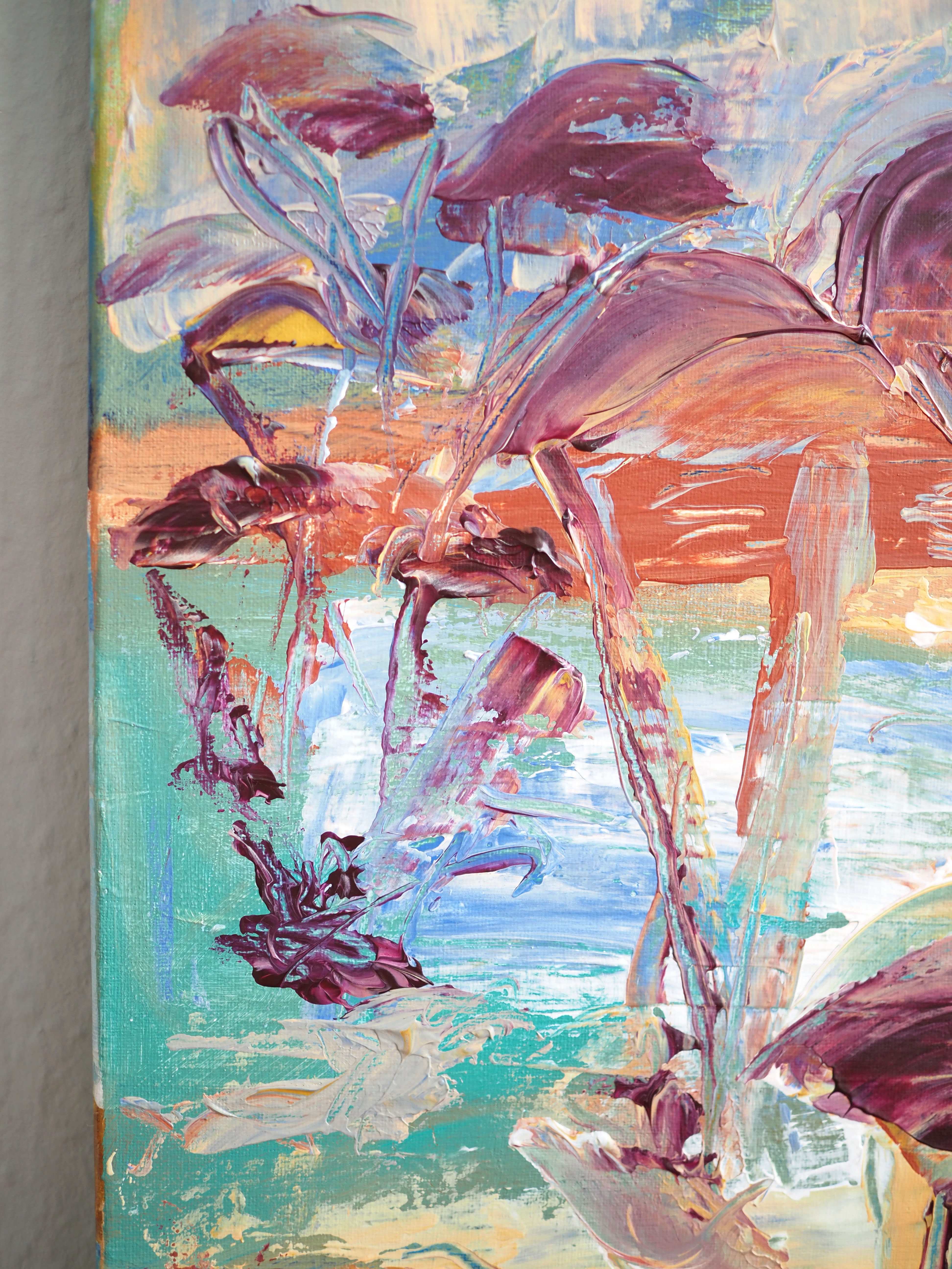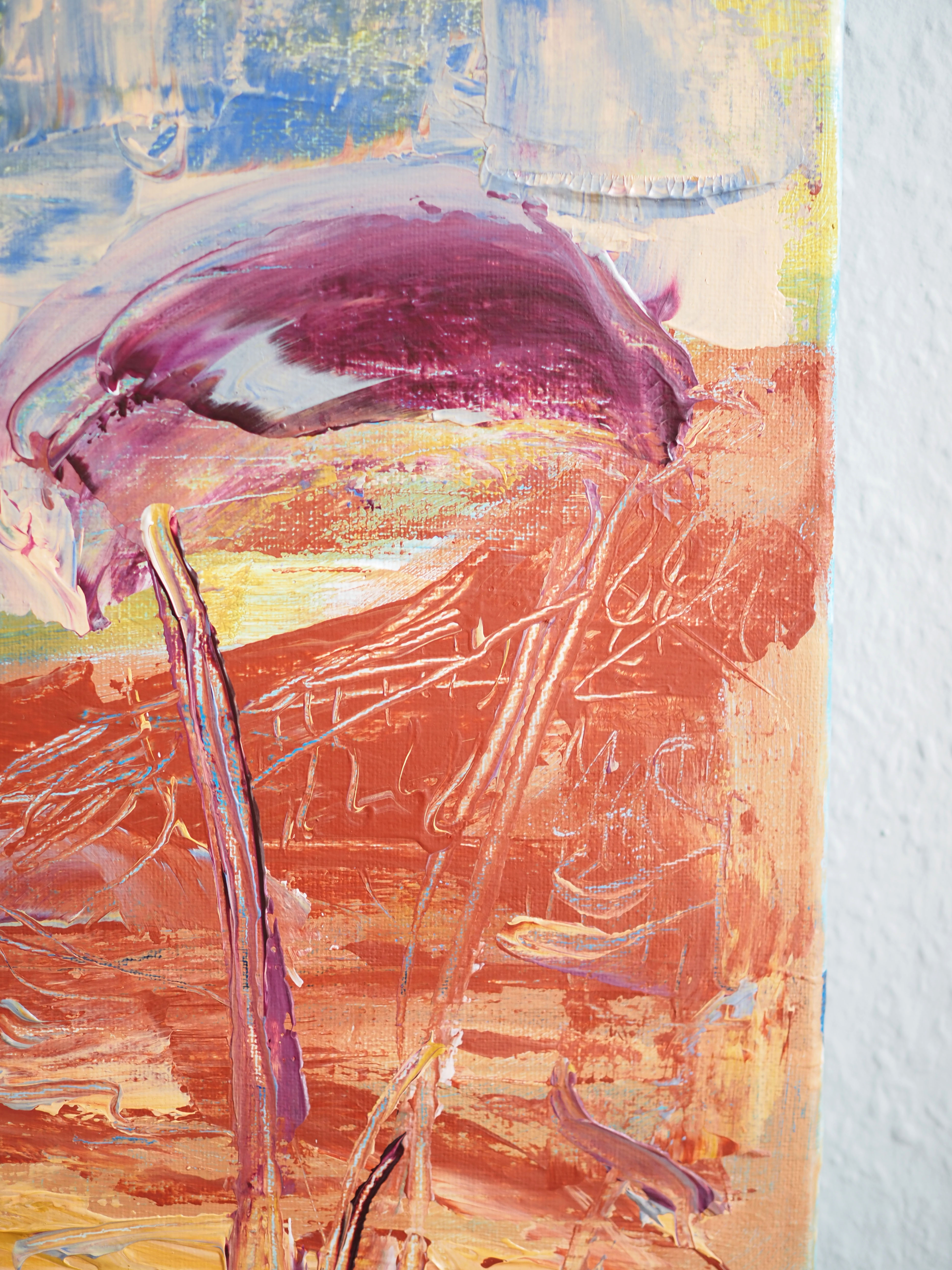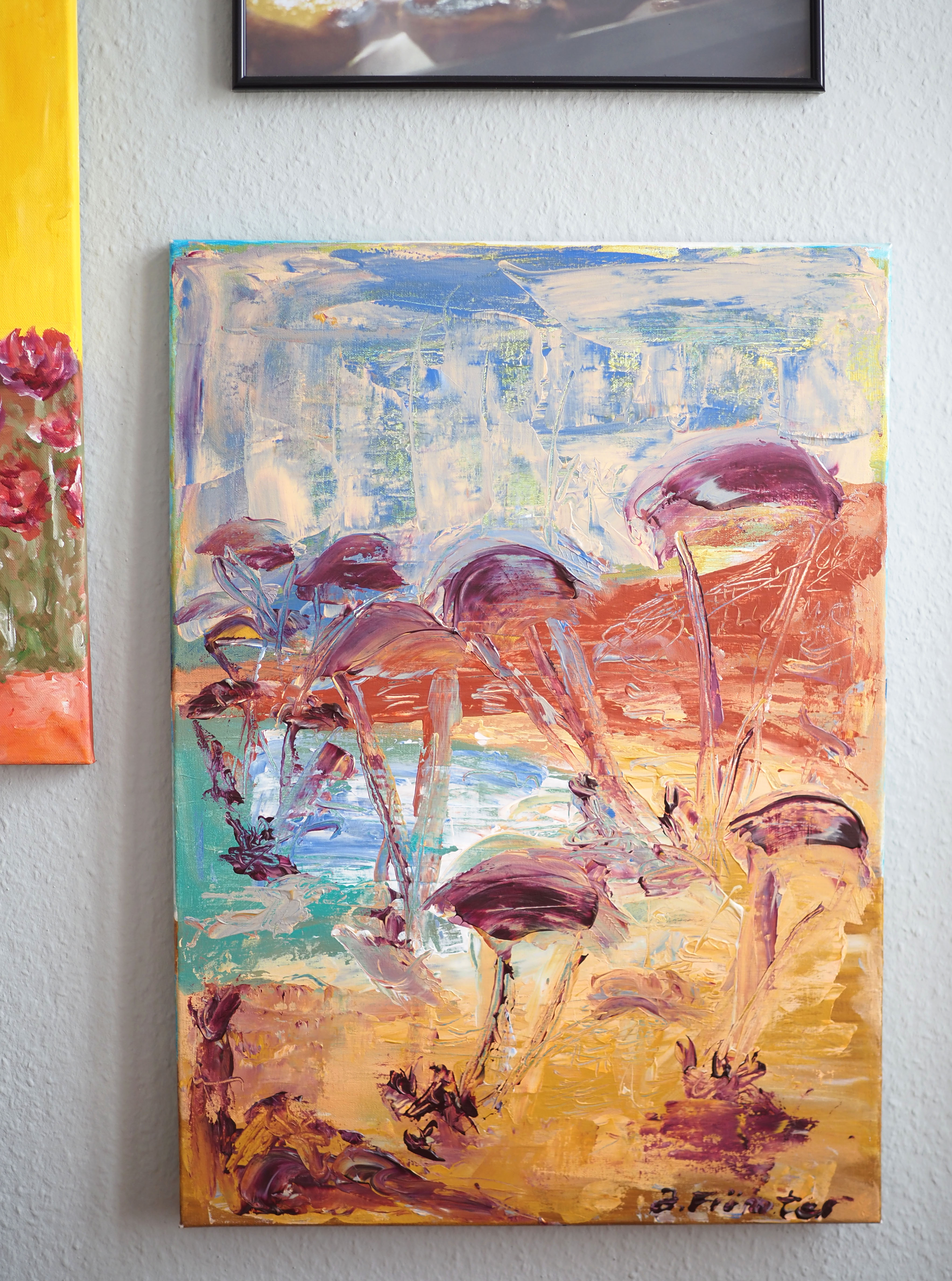 Meist greife ich dabei zu Farben, die meiner Meinung nach eine fröhliche Ausstrahlung besitzen. Meine Gemälde sollen positive Empfindungen beim Betrachter bzw. der Betrachterin auslösen, Inspirationen wecken, Gedanken aufwerfen.